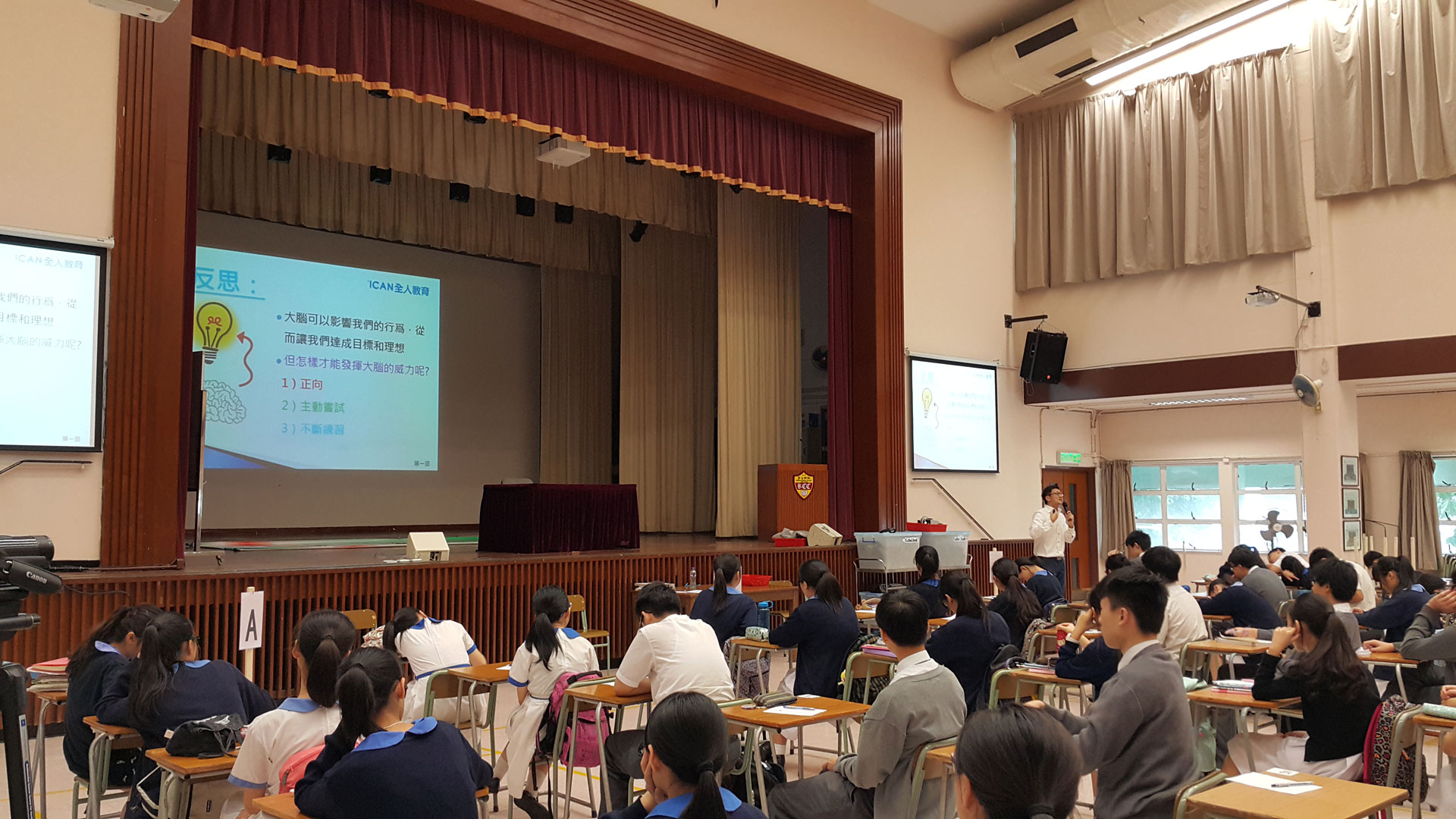 強化計劃.學生培訓 — 葵涌蘇浙公學 11 月 9,2015 在〈強化計劃.學生培訓 — 葵涌蘇浙公學〉中留言功能已關閉 強化計劃.學生培訓 — 葵涌蘇浙公學 活動資訊 學校:葵涌蘇浙公學地點:新界葵涌興盛路83號日期:2015 年 11 月 9 日(星期一.第一節)時間:下午 2 時 30 至 3 時 30 分對象:中四學生導師:陳慶麟先生 ICAN培訓師 活動簡介 2015年11月9日,本中心在葵涌蘇浙公學舉辦了第一場「強化精神心理健康,締造快樂豐盛人生」計劃的學生培訓。培訓期間,ICAN培訓師陳慶麟先生以「心想事成」為中心,向學生們講解大腦與心理健康,讓他們思考其追求的夢想(目標)和價值,並從中了解到大腦與夢想的關係。 精華相片