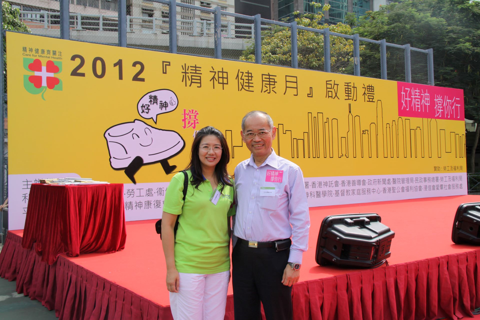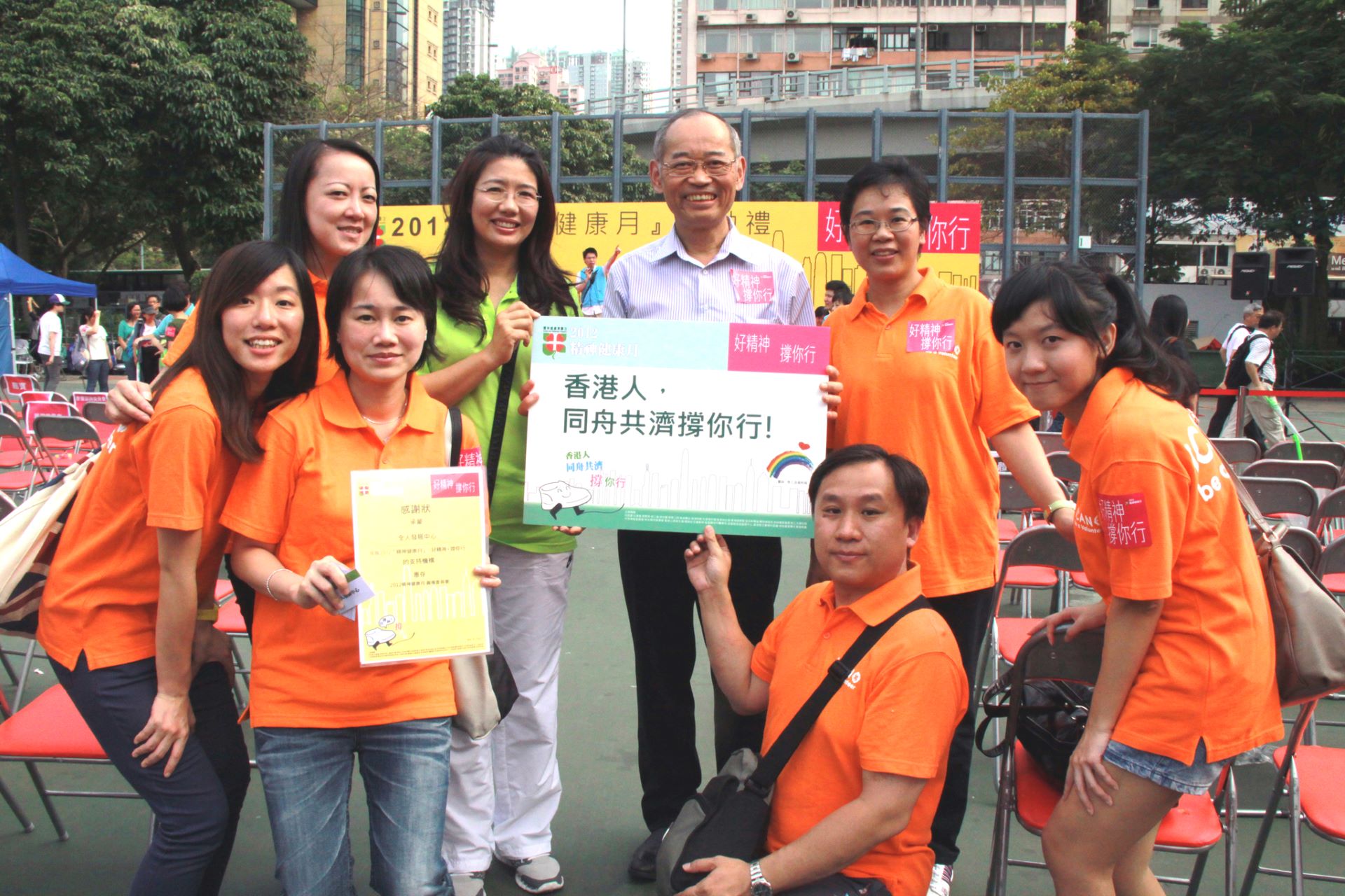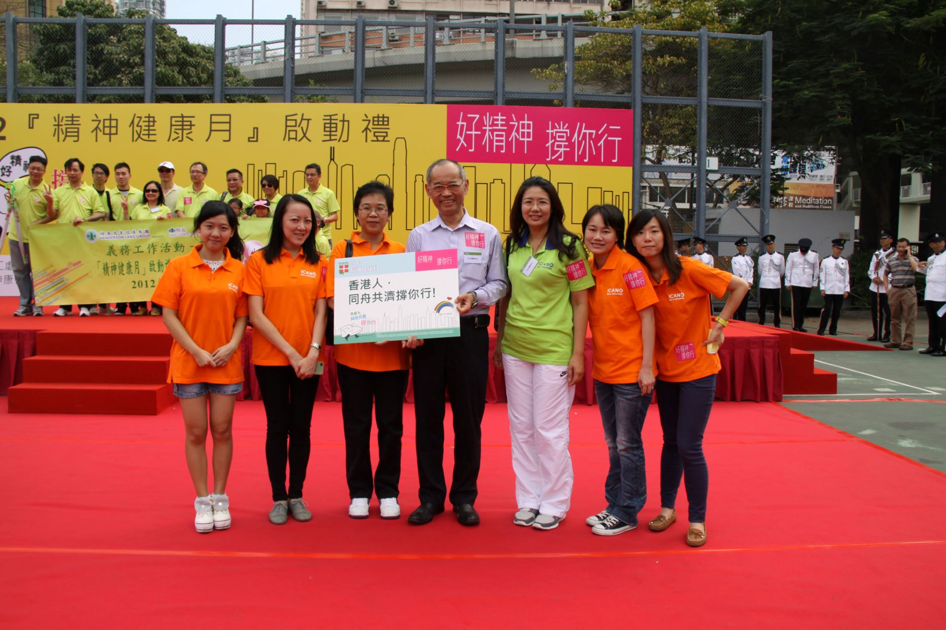 <好精神 撐你行> 2012 精神健康月 起步禮暨啟動儀式 10 月 7,2012 在〈<好精神 撐你行> 2012 精神健康月 起步禮暨啟動儀式〉中留言功能已關閉 <好精神 撐你行> 2012 精神健康月 起步禮暨啟動儀式 活動資訊 日 期:2012 年 10 月 7 日主 題:<好精神 撐你行> 2012 精神健康月 起步禮暨啟動儀式活動類別:典禮、步行籌款主辦機構:2012 「精神健康月」籌備委員會、利民會、扶康會、教育局、勞工處、衛生署、東華三院、香港電台、香港明愛、社會福利署、香港神託會、香港善導會、政府新聞處、醫院管理局、民政事務總署、勞工及福利局、平等機會委員會、新生精神康復會、香港心理衞生會、職業安全健康局、香港精神科醫學院、基督教家庭服務中心、香港聖公會福利協會、浸信會愛羣社會服務處地 點:維多利亞公園 活動簡介 本月為精神健康月,勞工及福利局等多個部門在銅鑼灣維園舉行一年一度的「2012 年精神健康月」啟動禮暨巡行活動。「全人發展中心」作為支持單位積極響應,透過多項活動,向大眾推廣精神健康的重要性。同場舉行「好精神.撐你行」巡行活動,在啟動禮完成後開始,起點由維園出發,終點為灣仔軒尼詩道官立小學,支持推廣精神健康。 精華相片