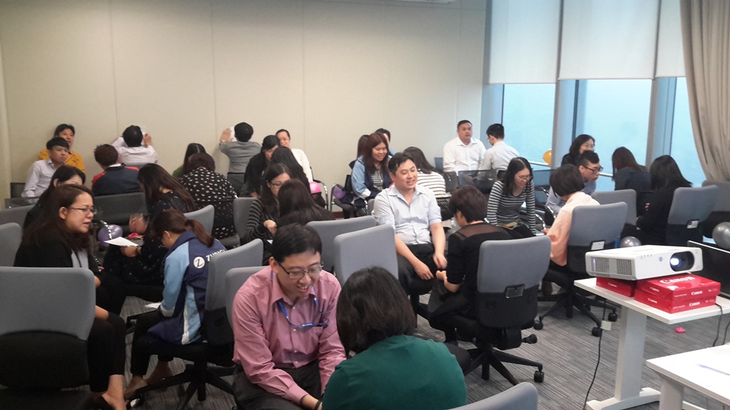 VF Hong Kong Ltd – 員工培訓工作坊 11 月 17,2015 在〈VF Hong Kong Ltd – 員工培訓工作坊〉中留言功能已關閉 VF Hong Kong Ltd – 員工培訓工作坊 活動資訊 日期:2015 年 11 月 17 日(星期二)時間:上午 9 時至 5 時地點:25/F, C-Bons International Center 108 Wai Yip Street, Kwun Tong講題:”Smart Heart, Work Smart!” Workshop導師:李穎賢小姐 全人發展中心臨床心理學家對象:VF staff 活動簡介 VF Hong Kong Ltd. 安排員工參與內部培訓,李穎賢小姐通過是此工作坊讓參加者體驗適應壓力和了解團隊精神,運用靜觀減壓的方法和不同體驗的活動能有效舒緩忙碌的生活,最後李小姐與一聚籌備工作坊人員合照。 精華相片